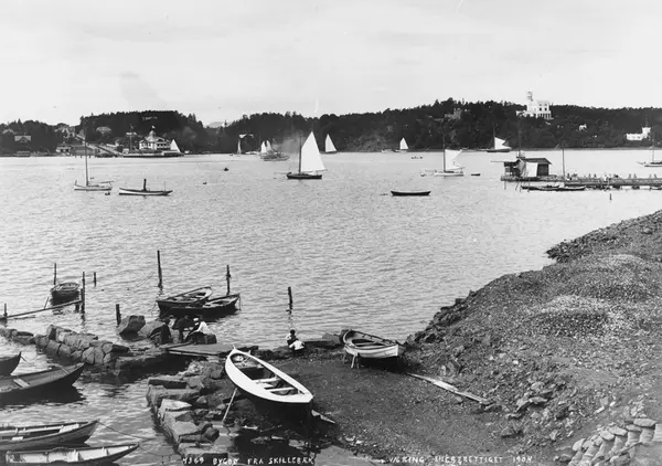 strand, brygge, fjord, robåter, seilbåter, Dronningen, Oscarshall