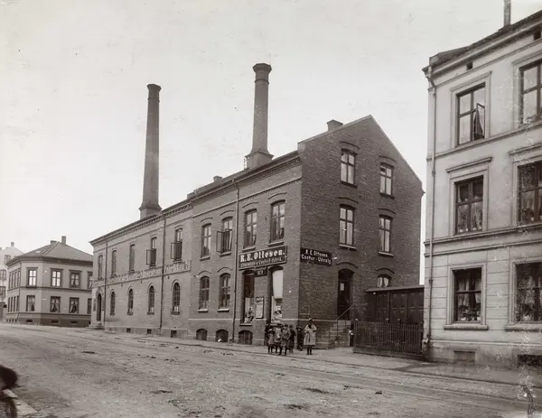 fabrikkbygning, Dietrichsons sjokolade- og mineralvannsfabrikk, R.E. Ottesen sjokolade- og konfektfabrikk, utsalg, bygårder, barn