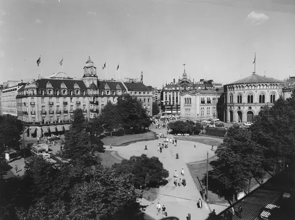 Eidsvolls plass med Grand Hotel og Stortinget.