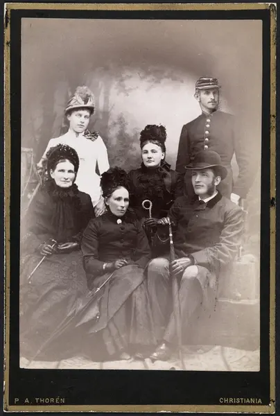Bak fra venstre: Karen Hiorth, Gine Hiorth f. Sommerfelt, Adam Severin Hiorth,. Foran fra venstre: Anne Sofie Hiorth f. Sommerfelt, Jørgine Marie (Maja) Hiorth, Christian Sommerfelt Hiorth.