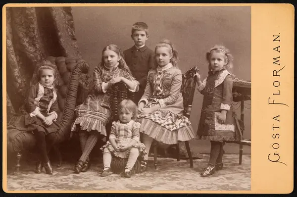 gruppe, barn, jenter, gutt, sittende og stående helfigur