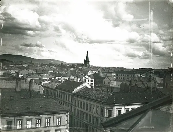 Nasjonalgalleriet, tak, utsikt nordøst, bygårder, forretningsgårder, St. Olavs kirke, Hammersborg skole