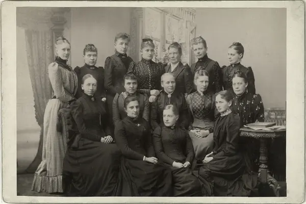 gruppe, kvinner, lærere, frøken Falsens pikeskole (senere Olaf Bergs pikeskole)