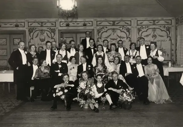 Norsk Folkemuseums restaurant, interiør, 50-årsdag, gruppe, kvinner, menn