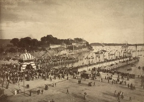 keiserbesøk, velkomstpaviljong, mennesker, havn, småbåter, seilfartøyer, Akershus festning