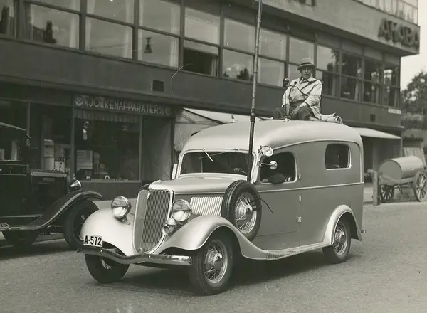 NRK's første reportasjebil A-572, "Lammers", oppkalt etter komponisten fordi bilen var sølvfarget. (Thorvald Lammers skrev "Sølvet det er seg så edelt et malm".) Ford 1934 med karosseri spesialbygget i Oslo av N. Jacobsens Karosserifabrikk, Oslo, trolig før flytting fra Lindemanns gate 9 til Nedre gate 5.