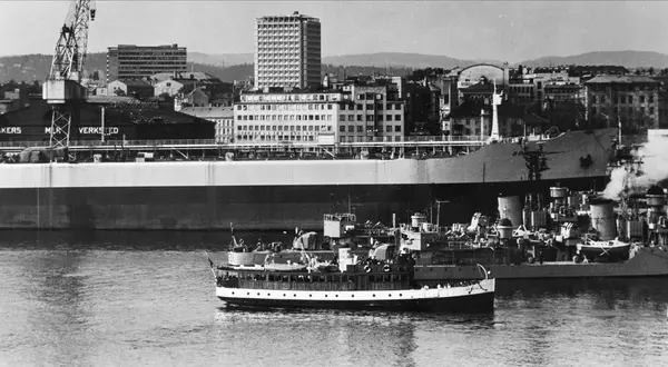 Marinefartøyene på bildet er de norske fregattene KNM Tromsø (F311) og KNM Haugesund, bygget i Storbritannia under 2. verdenskrig som eskortejagere av Hunt-klassen og omklassifisert til fregatter i 1956. Tankeren på bildet, M/T Beau, lå til utrustning ved Aker Verft i 1964, så bildet er tatt dette året.