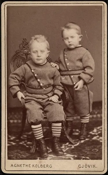 dobbeltportrett, gutter2, brødre, sittende og stående helfigur