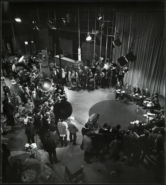Folkeavstemningen om EF-medlemskap, NRK Fjernsyn, studio, journalister, fotografer, politikere, debatt