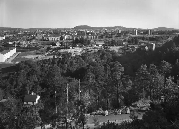 utsikt, skog, kulturlandskap, Nygård teglverk, blokkbebyggelse, Steen & Strøms lagerbygning