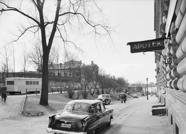 gateløp, bygårder, apotekskilt, Framnes løkke, biler