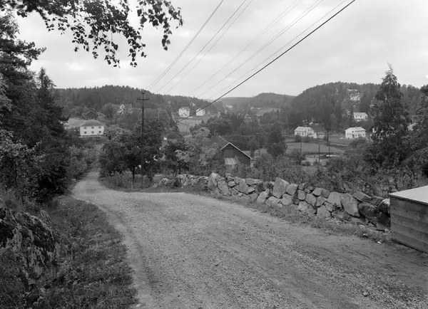 Ljabrubakken. Det hvite huset er Hauketo kro. Nederst i denne bakken, som nå blir fredet, ligger Ljabrua, en gammel steinbru, antakelig fra 1804-05. Både bakken og brua er en del av den fredrikshaldske kongevei som fortsatte sørover forbi kroa og opp til Hauketo gård.