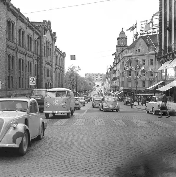 gateløp, biler, trafikk, Stortingsbygningen, forretningsgårder