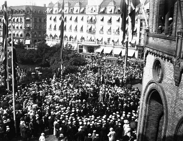 utsikt, flagg, mennesker, norsk-amerikanere, trikker, Grand Hotel, Hotell Nobel