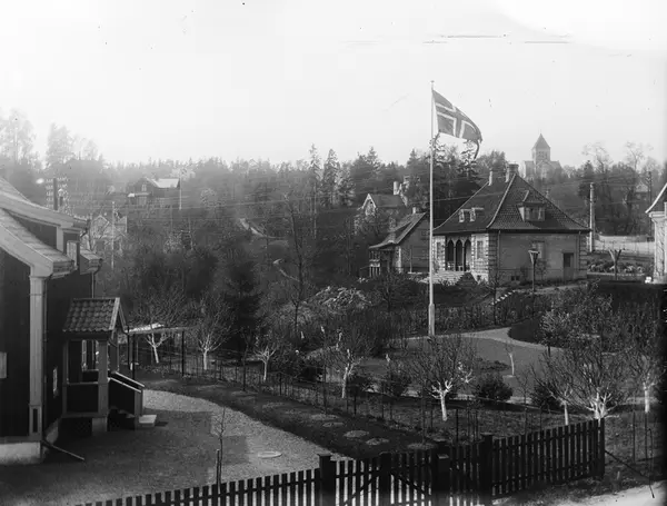 utsikt, villabebyggelse, hager, flaggstang, Ullern kirke