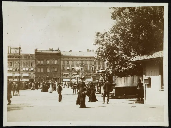 torg, mennesker, trikk, trikkefører, forretningsgårder