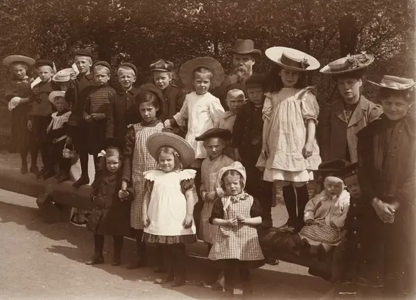 Kristiania Indremisjon, barnehjem, landtur, gruppe, jenter, gutter, barneklær,