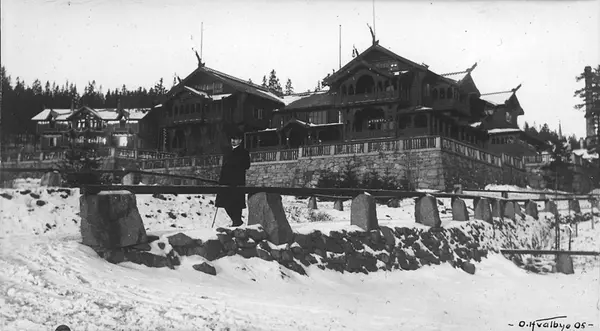 stabbesteiner, vei, mann, Holmenkollen turisthotell, skog