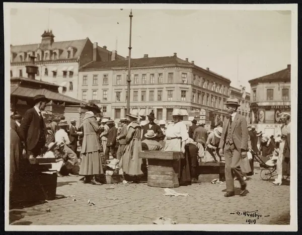 torg, mennesker, boder, torghandel, grønnsaker, bygårder, forretningsgårder, Folkets Hus