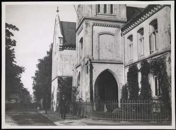 Oslo bispegård, hage, gjerde, fortau, mann