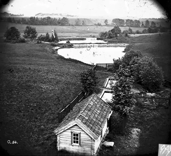 Kunstig dam bygget i tilknytning til Grefsen Vandcuranstalt. Fotografiet har i en årrekke vært presentert som utsikt oved Nords isdammer. Dette er en misforståelse.