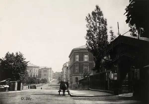 gateløp, bygårder, Tivoli (Klingenberg), hovedinngang, hestekjøretøy, mennesker, Stortingsbygningen