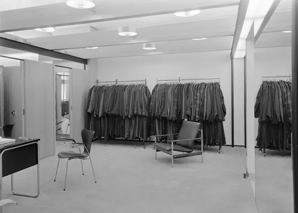 Ferner Jacobsen herrekonfeksjonsforretning, interiør, utstilling, varer