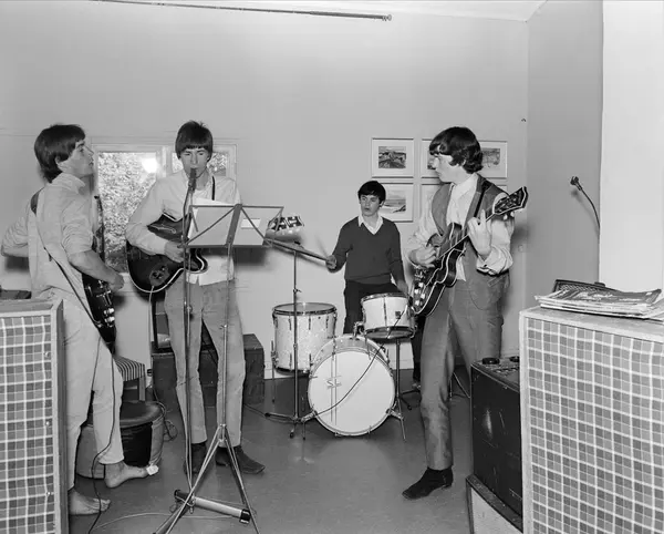 villa, interiør, hobbyrom, gutter4, rockegruppe, kjellerband