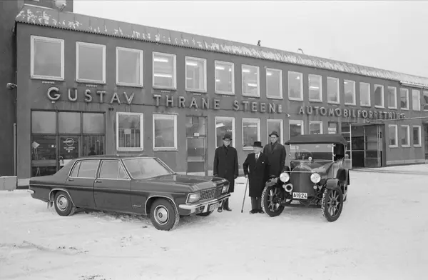 Gustav Thrane Steen bilforretning a.s., menn, veteranbil, ny bil