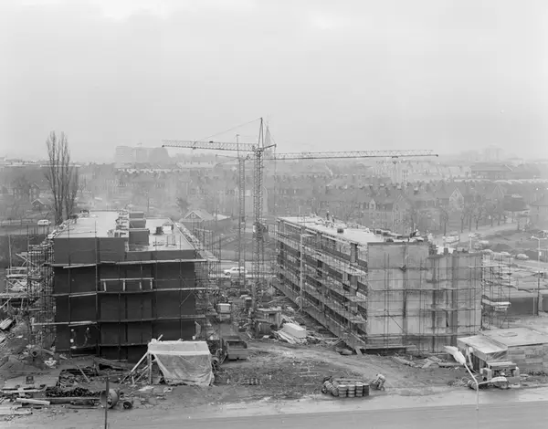 byggetomt, byggevirksomhet, boligblokker, kraner, Geitmyra skolehage, bygårder, Rivertzke kompleks