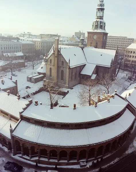 utsikt, Oslo Domkirke, Kirkeristen, basarer, anleggsarbeid, bygging av jernbanetunnel, snø