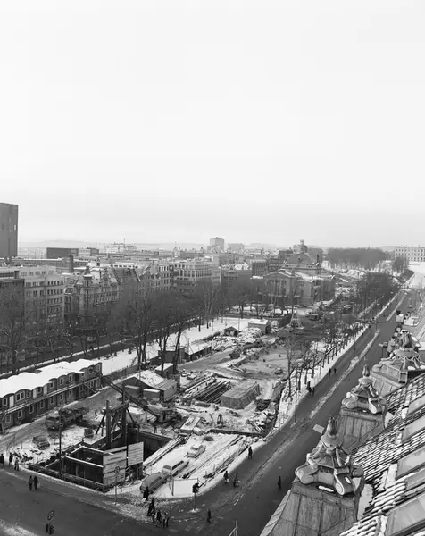 park, anleggsarbeid, bygging av jernbanetunnel, brakker, forretningsgårder