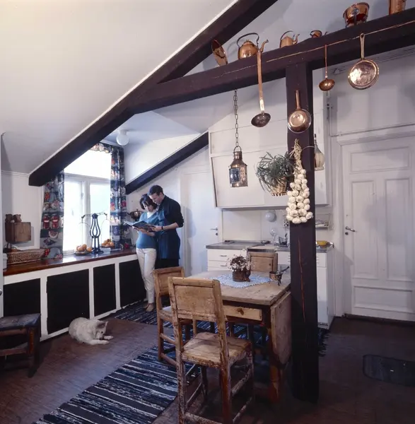 leilighet, interiør, kjøkken, mann, kvinne