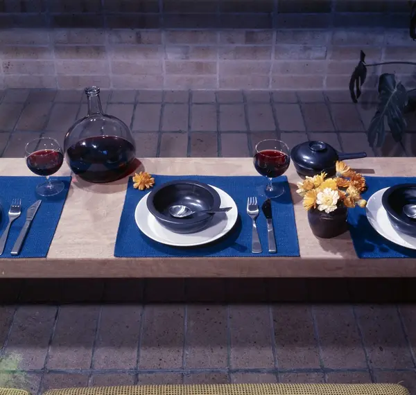 bord, oppdekning, kuvert, servise, glass, bestikk, vinkaraffel