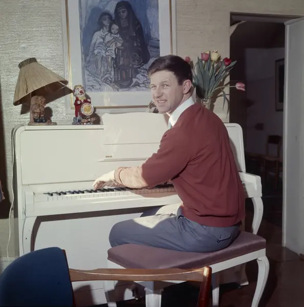 bolig, interiør, stue, mann, artist, sittende ved piano