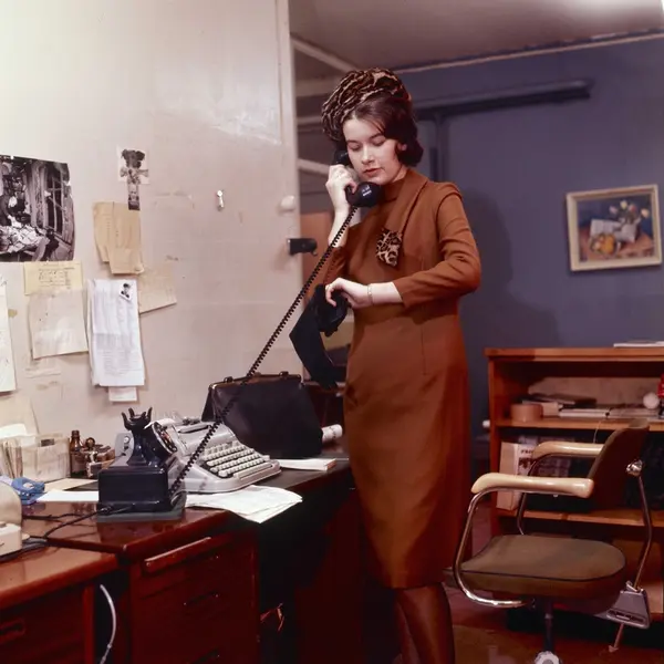 Vårt Lands kontor, interiør, kvinne, journalist, telefon