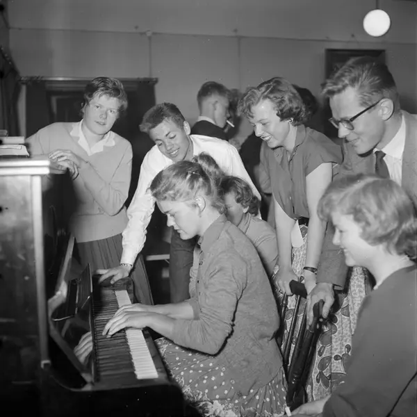 Uranienborg menighetshus, ungdomsklubb, gutter, jenter, piano, pianospill