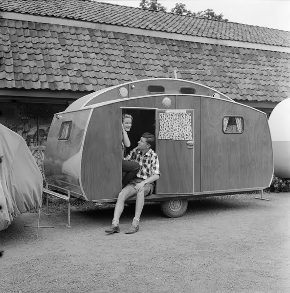 Frogner Hovedgård, Oslo Bymuseum, campingutstilling, campingvogn, mann, kvinne