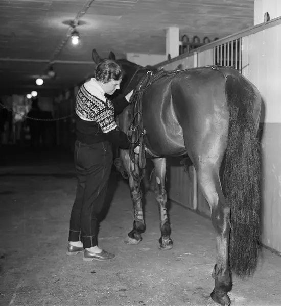 Bjerke Travbane, interiør, stall, kvinne, hest