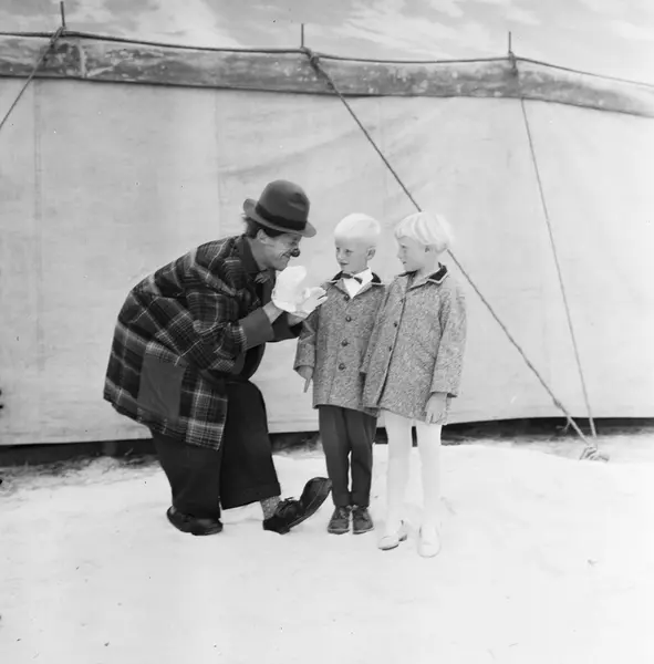 Cirkus Arnardo, telt, interiør, mann, klovn, jente, gutt