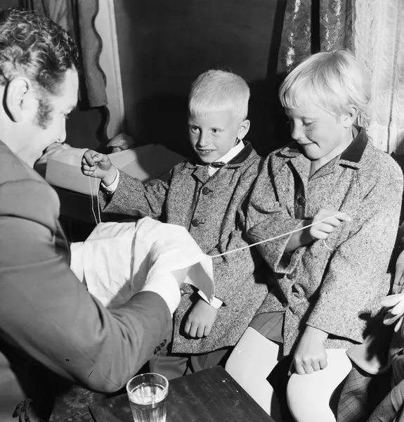 Cirkus Arnardo, telt, interiør, mann, tryllekunstner, sirkusdirektør, gutt, jente
