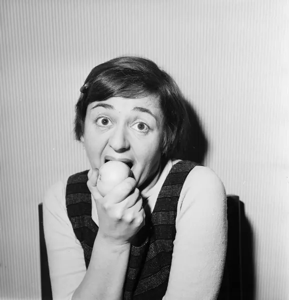 portrett, kvinne, skuespiller, brukskunstner, eple