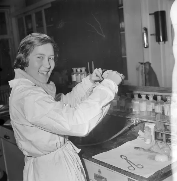 Fotografert for Alle Kvinners serie "Yrker". Rigmor Dahl Delphin (1908-1993) var ansatt som fotograf i ukebladet Alle Kvinner. Hennes negativarkiv ble i 2005 overført Oslo Bymuseum fra Gyldendal Norsk Forlag som var utgiver av bladet.