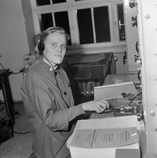 interiør, telegrafstasjon, kvinne, radiotelegrafist