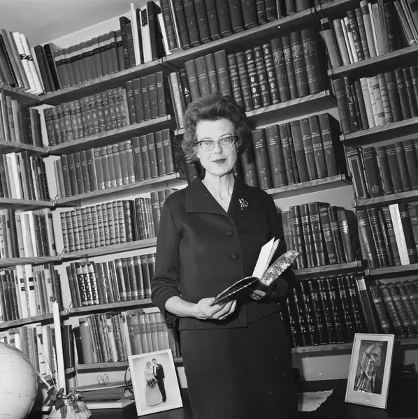 bolig, interiør, stue, kvinne, forfatterinne, bokhyller