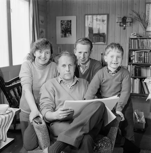 bolig, interiør, stue, familiegruppe, kvinne, forfatter, mann, tegner, gutter