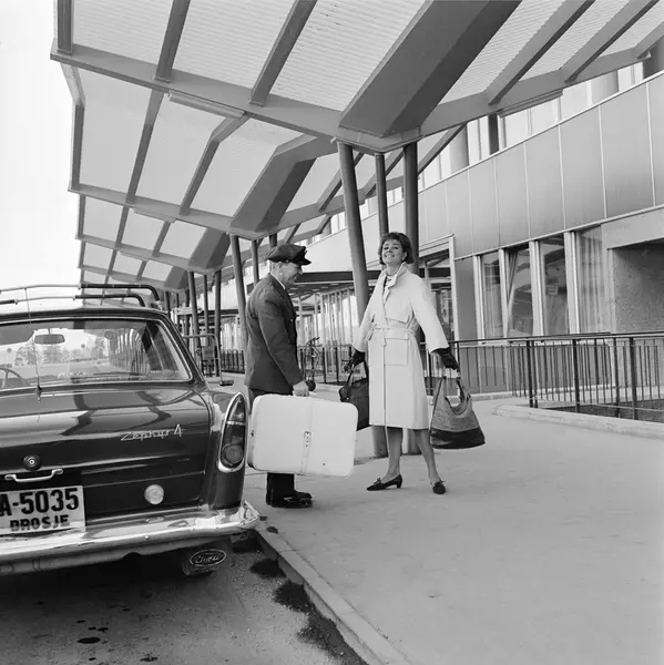 Oslo lufthavn Fornebu, kvinne, modell, mann, drosjesjåfør, koffert
