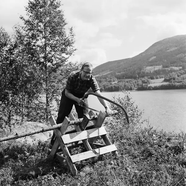 mann, journalist, forfatter, programsekretær, sagbukk, saging