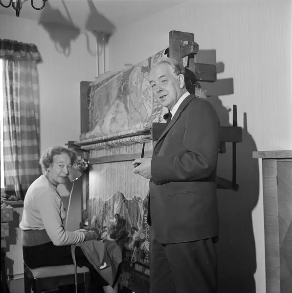 bolig, interiør, stue, mann, forfatter, kvinne, vevstol