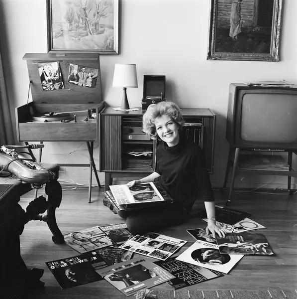 bolig, interiør, kvinne, jazzsangerinne, platespiller, LP-plater, jazzplater